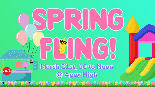 Inflatables, face painting, and a huge Easter egg hunt with 2 chances to win big prizes! Spring Fling is March 21st from 10am-12pm at Apex High and is 100% FREE! Help make this an impactful outreach event by inviting your family, friends, and neighbors. You don’t want to miss it! Click the button below to sign up to serve!