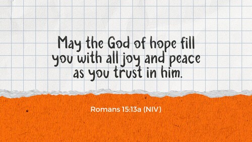 May the God of hope fill you with all joy and peace as you trust in Him. Romans 15:13