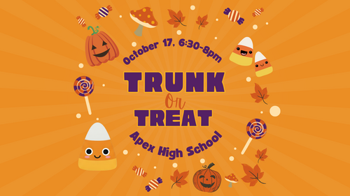 BE AN INVITER to our 6th annual Trunk or Treat Friday, October 17th, 6:30pm @ Apex High. Dress up the kids and bring the neighbors! We'll have lots of candy for the kids, costume contests, big prize giveaways, and fall